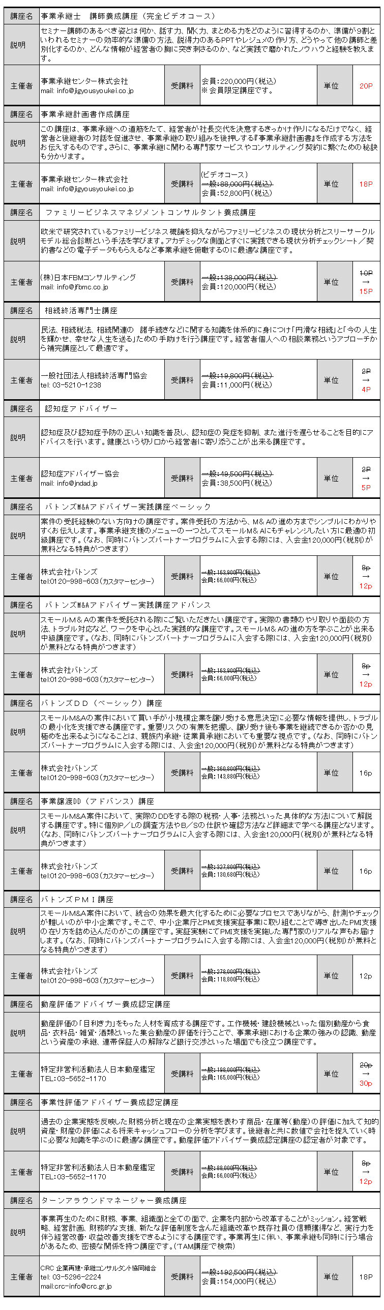一般社団法人事業承継協会では、下記の講座等を推奨講座として認定しています。